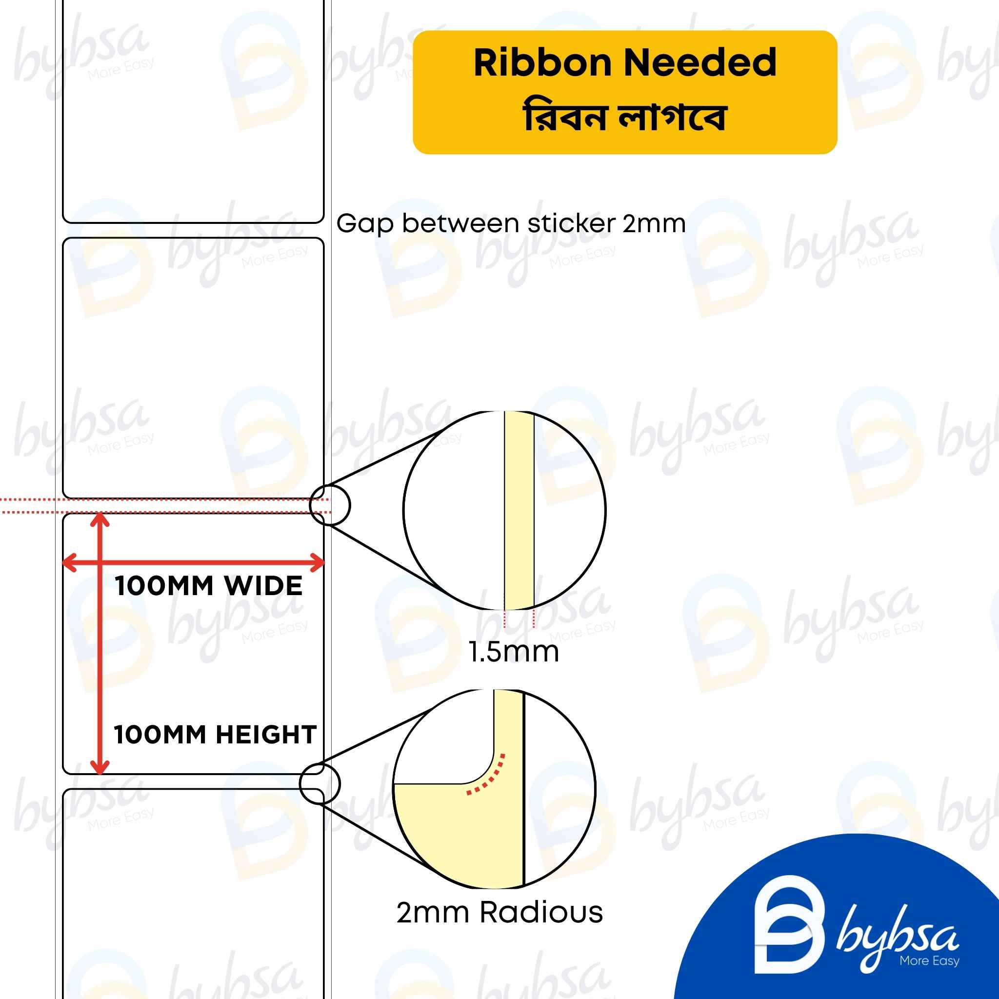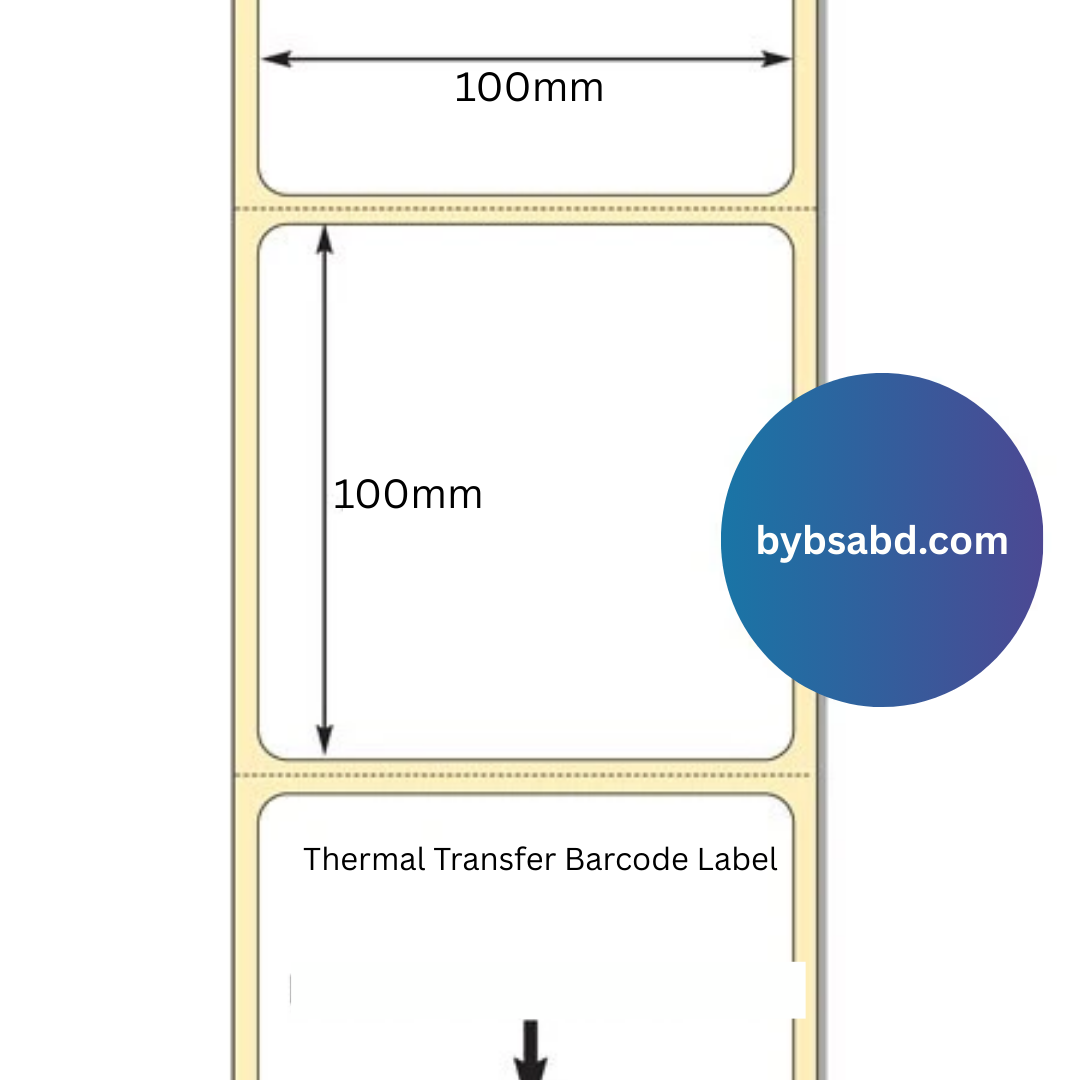 In Bangladesh, you can purchase the 100 mm x 100 mm Thermal Transfer Barcode Label Sticker Roll from Bybsa Solutions Co. We also offer a wide range of POS Paper Rolls, Barcode Labels, Adhesive Stickers, and Printing Accessories to meet your business needs.