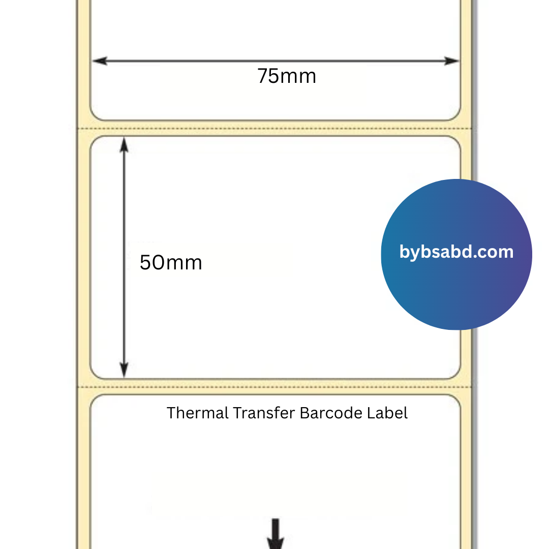 In Bangladesh, you can purchase the 50mm x 75 mm Thermal Transfer Barcode Label Sticker Roll from Bybsa Solutions Co. We also offer a wide range of  POS Paper Rolls, Barcode Labels, Adhesive Stickers, and Printing Accessories to meet your business needs.