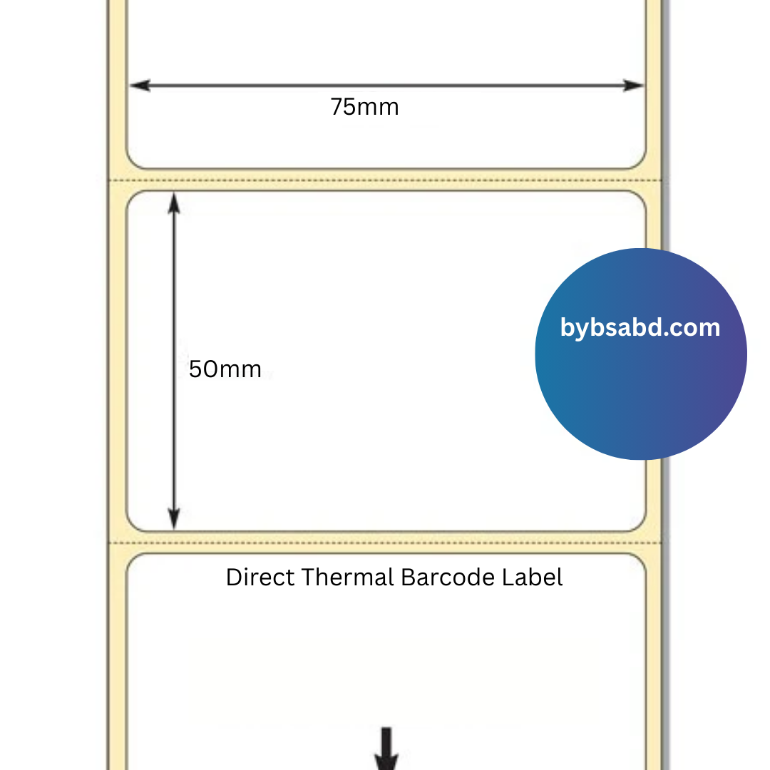 In Bangladesh, you can purchase the 75 mm x 50 mm Direct Thermal Label Sticker Roll from Bybsa Solutions Co. We also offer a wide range of POS Paper Rolls, Barcode Labels, Adhesive Stickers, and Printing Accessories to meet your business needs.