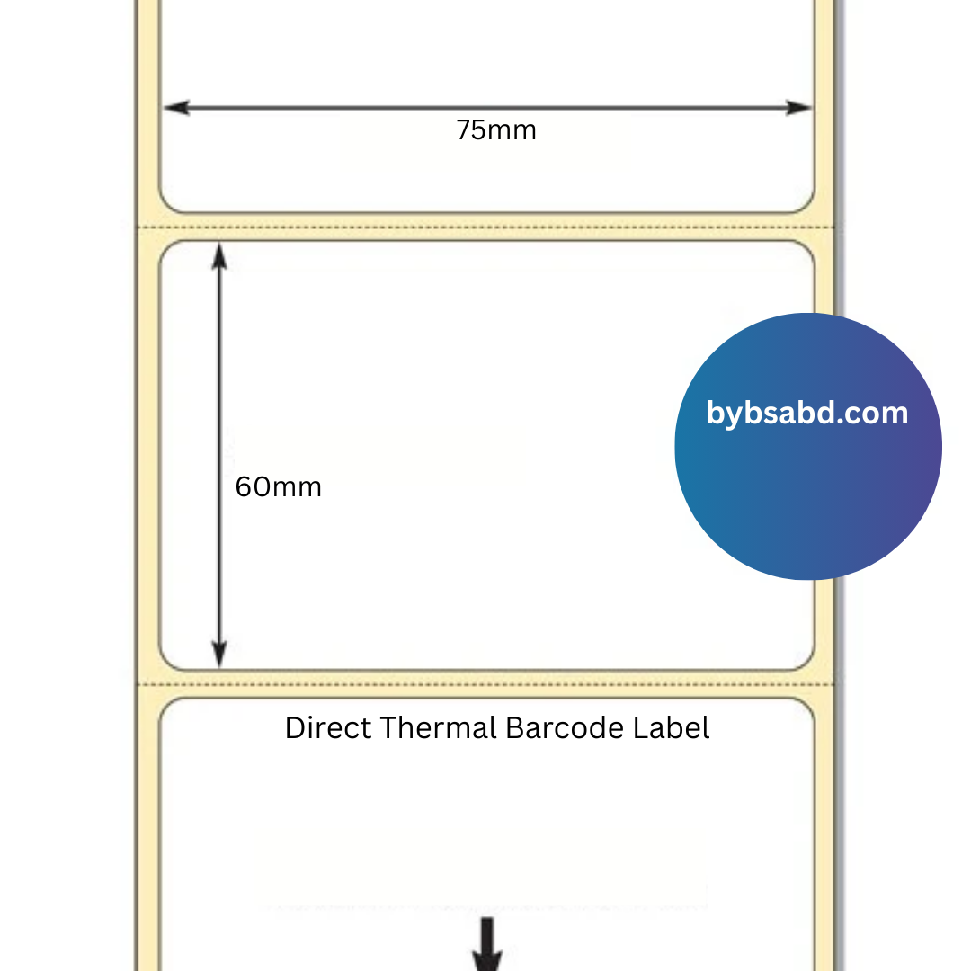 In Bangladesh, you can purchase the 75 mm x 60 mm Direct Thermal Label Sticker Roll from Bybsa Solutions Co. We also offer a wide range of POS Paper Rolls, Barcode Labels, Adhesive Stickers, and Printing Accessories to meet your business needs.