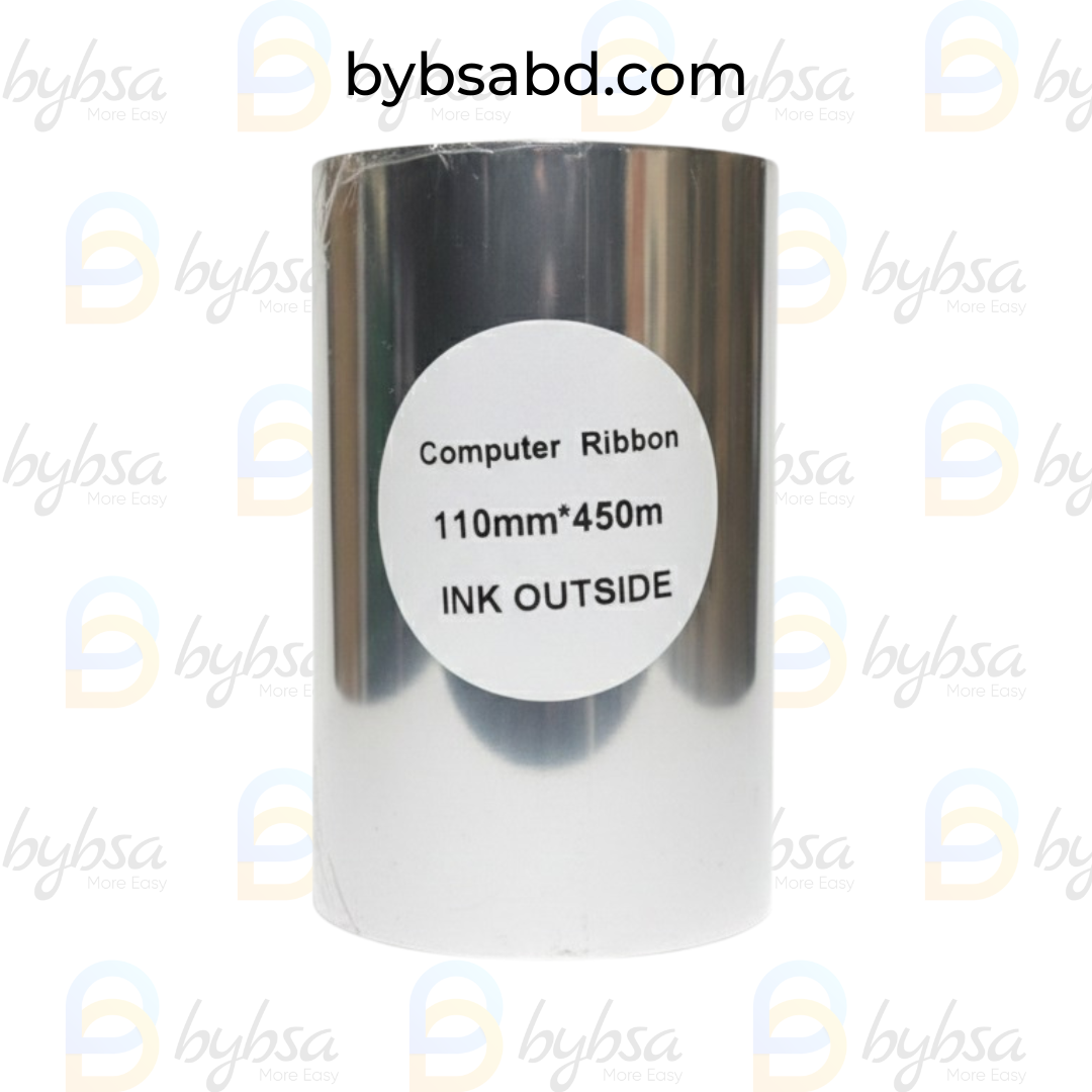 In Bangladesh, you can purchase the Computer Ribbon 110mm*450m INK OUTSIDE from Bybsa Solutions Co., your trusted source for POS Paper Rolls, Barcode Labels, and Adhesive Stickers, Barcode Ribbon